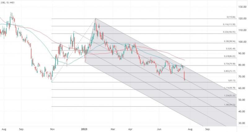 舜宇光学(02382)本周早些时候发盈警,预期今年上半年股东应占溢利介乎4.07亿至4.75亿元(人民币.下同),较去年同期的13.58亿元,减少约65%至70%;股价周四低开5.1%后,跌幅曾扩大至近14%。