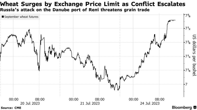 俄罗斯退出“黑海谷物协议”后,乌克兰的粮食港口遭到轰炸,俄罗斯袭击多瑙河畔一个主要粮港后,本周初小麦和玉米的期货价格大幅上升。与此同时,美国种植区的恶劣天气使让价格前景变得不明朗。