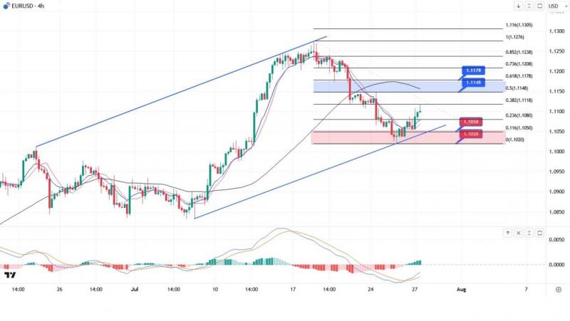 4小时图走出了低位的反弹,重返均线上方,在决议公布前动能暂缓,如果欧央行继续表态加息必要性,则汇价涨势可能扩大至1.1148/1.1178范围,为挑战1.1200关口定下方向。相反,如果表态接下来的行动取决于数据,则9月加息概率下降,汇价或重新回到近期低位。