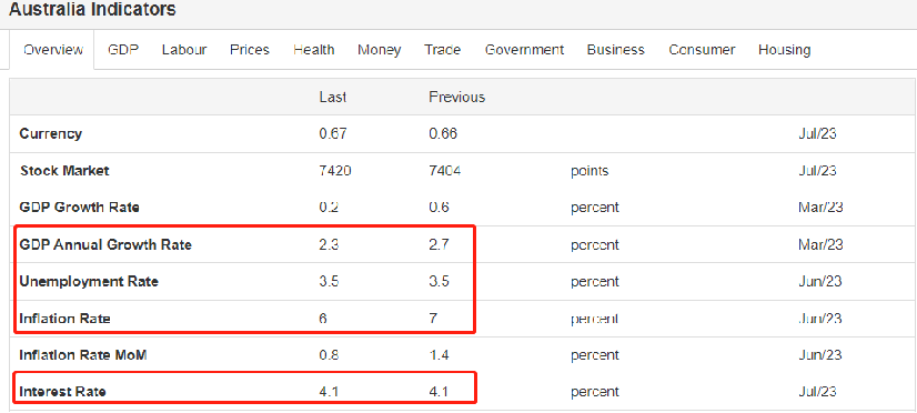 本周二12:30,澳洲联储将公布利率决议。市场主流预期认为,澳洲联储将加息25基点,至8月1日澳洲联储利率决定将从4.1%升高至4.35%。本月初,澳洲联储曾宣布停止加息一次。澳洲联储主席洛威暗示,7月初的停止加息只是暂时的,后续仍有可能继续加息。他说道“可能需要进一步收紧货币政策,以确保通胀在合理的时间框架内回到目标水平”。如果本周二的利率决议确如预期一般加息25基点,则澳洲联储“暂停加息”的预期得到验证。澳洲联储最新CPI增速6%,远高于调控目标2%;最新失业率3.5%,低于自然失业率,劳动力市场表现良好。高通胀和低失业率的宏观经济特征,广泛存在于欧美发达国家当中。持续抬高的利率有可能导致不利结果出现,主流市场预期当中,关于欧美国家宏观经济衰退的看法正在增强,这其中就报告澳大利亚。