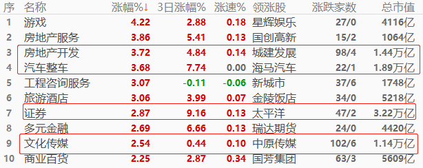 会议还提到:适应我国房地产市场供求关系发生重大变化的新形势。房地产市场已经从“增量博弈”转化为“存量博弈”,楼市需求从无房者置业为主转变为改善者置业为主。各大城市纷纷出台利好楼市政策,A股市场房地产开发板块受益。