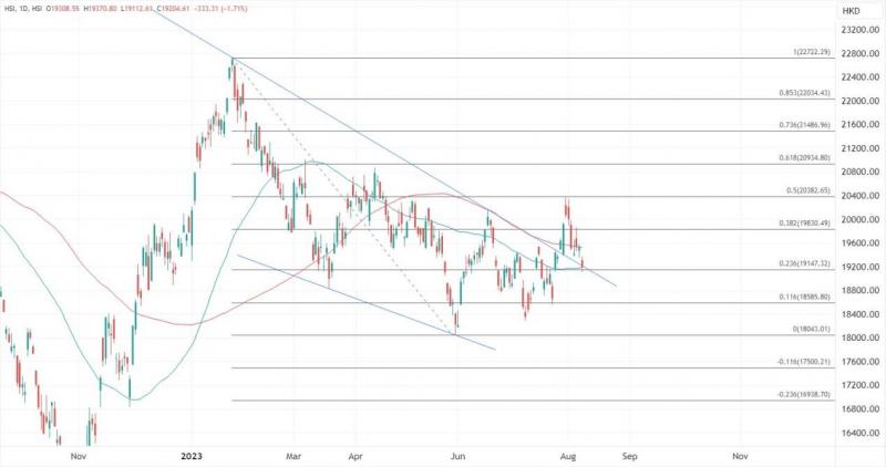 ATFX港股:港股今日走势疲惫,恒指半日跌267点或1.37%,早段曾跌近400点,午后维持下行,录得逾2%的跌幅,权重科技股集体表现欠佳。