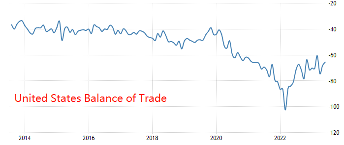 2023年6月,美国贸易逆差从5月的683亿美元收窄至655亿美元,为三个月低点,与市场预期的650亿美元大致相符。进口下降1%,至3130亿美元,为2021年11月以来的最低水平,主要是电脑、成品金属、原油、艺术品和其他收藏品、宝石钻石和旅游的购买下降。受原油、燃料油、天然气、医药制剂、民用飞机和运输销售的拖累,出口小幅下降0.1%,至2475亿美元,为去年3月以来的最低水平。