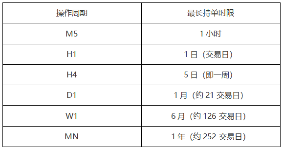 上表所述操作周期和最长持单时限,主要针对24H交易的标的,对于内盘股和内盘期货来说,由于其交易市场较短(4~9.5小时),日内K线数较少,需要尽量避免H1和H4级别的交易。