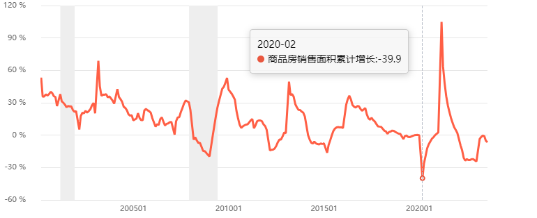据统计局数据,7月全国商品房销售面积同比下降6.5%,前值为下降5.3%,降幅进一步扩大。2020年2月份,大流行期间,全国商品房销售面积增速曾滑坡至-39.9%,创出有记录以来最低值。2022年12月,受高基数因素影响,增速再降低至-24.3%。长周期看,增速数据具有震荡特征,当达到历史底部区域时会有反弹需求;当涨至历史顶部区域时有回调需求。