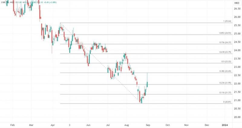 ATFX指,今年以来中银香港股价跑输同行股价,而银行股也跑输大市,部分原因也在于其内地房地产敞口较高的贷款业务。另外,自去年以来香港息口持续上升,利好本地銀行息差,中银香港上半年净息差按年大增47基点。