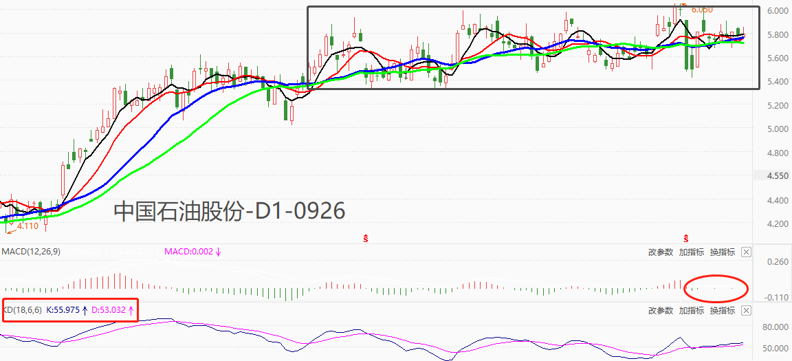 技术角度看,中国石油股份的均线系统横向发展,K线波浪式的处于均线上方和下方,区间上限6.05,区间下限5.32。 最近五根K线的收盘价分别为5.81、5.77、5.81、5.78、5.79,差值极小,横向波动特征极为显著,预计未来将出现向区间上限/下限的运动。MACD柱状线在零轴附近,中短期震荡特征显著。震荡指标KD的读数分别为55/52,处于中值附近。综合来看,多数指标提示中国石油股份处于标准的震荡状态,适宜高抛低吸。需要对国际油价的走势保持警惕,一旦价格持续大幅度下跌,叠加港股市场相对悲观的短期投资氛围,有可能导致中国石油股份的股价破位下行。