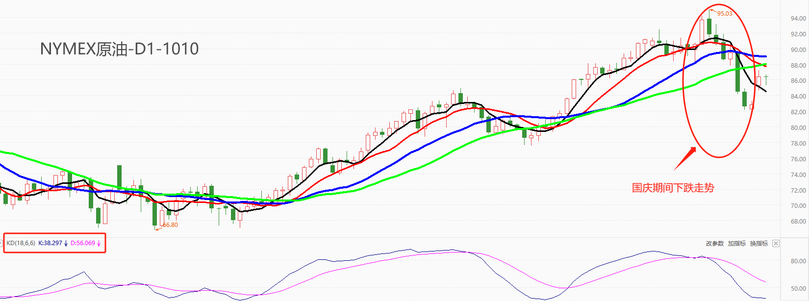 技术角度看,WTI在本周一跳涨开盘,最高触及87.24美元,相比上周五最低点81.5美元上涨7%,反弹态势良好。中短期均线早已向下交叉,中长期均线仍保持多头排列,表明上涨的趋势仍然稳固,本轮下跌定性为暂时性回调,寻得底部后仍将上涨。KD指标的读数分别为38/56,正处于超买区间向超卖区间的移动过程中,提示回调走势仍未见底。综合来看,多数指标指向多头趋势,暂时性的回调将在基本面两项利多因素影响下很快结束。