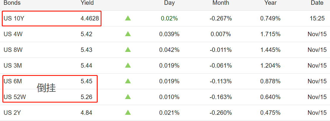 十年期美债收益率最新值4.4628%,相比年内最高点4.988%已经下降0.52个百分点,意味着降息预期有所增强。6个月期的美债收益率5.45%,高于一年期美债收益率5.26%,出现明显倒挂,意味着降息动作有可能在半年到一年内出现。美元指数和美债收益率走势共振,在美债收益率集体走低的情况下,美元指数较难重启趋势性上涨走势。