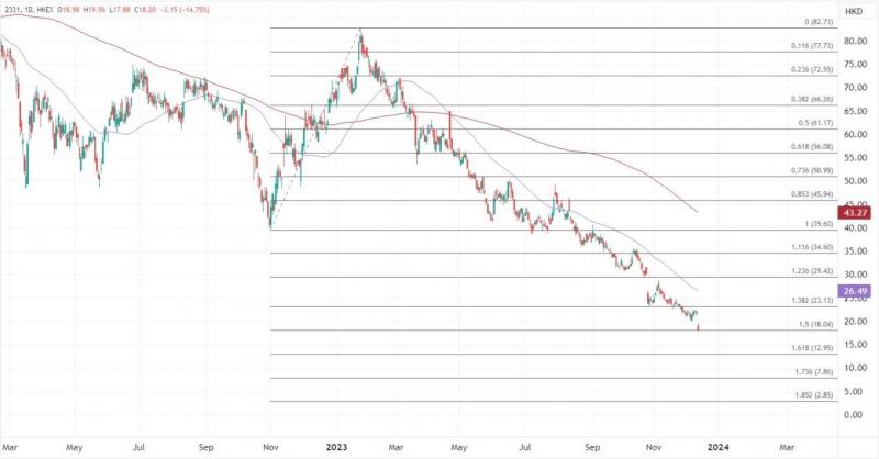 ATFX港股:今日恒指再创逾一年新低,多只股票创下52周最低位,在异动股中,李宁(02331)今早股价大幅低开后低走,一度跌逾15%,午后仍跌逾13%。直接的触发因素在于:李宁意外宣布将从恒基兆业购买物业,在香港楼价创六年半新低的背景下,市场对此举显示出了担忧。