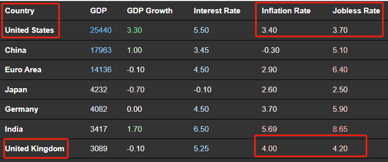 本周四20:00, 英国央行将公布开年首个利率决议结果,市场普遍预期其将维持5.25%的基准利率不变,本次决议没有央行行长贝利的新闻发布会。英国央行预期维持基准利率不变的原因与美联储一致:宏观经济正强劲增长,没有明显的衰退迹象,降息的理由不够充分。不过,英国的宏观经济数据表现不及美国健康,比如英国的通胀率为4%,高出美国0.6个百分点,距离2%的温和通胀标准仍有不小距离;英国的失业率为4.2%,高出美国0.5个百分点,但仍低于5%的充分就业标准线。从经济数据表现看,如果今年英国和美国的央行都会降息的话,英国率先降息的可能性更大。