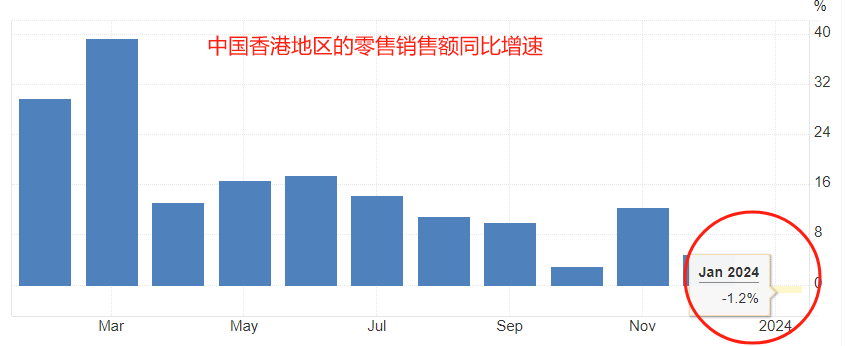 3月1日公布的中国香港地区1月零售销售年率,最新值为-1.2%,低于前值4.58%,低于预期值3.2%,意味着消费意愿和消费能力有所下滑。细分项目看,燃料价格下降17.8%、超市类下降14.2%、耐用消费品下降12.5%,三者降幅居前。从遏制高通胀的角度看,零售销售额的同比下降对于宏观经济来说是好消息,意味着激进加息的作用得到充分体现。需要提醒的是,如果零售数据持续走弱,意味着宏观经济有衰退可能,不利于股票指数上涨。