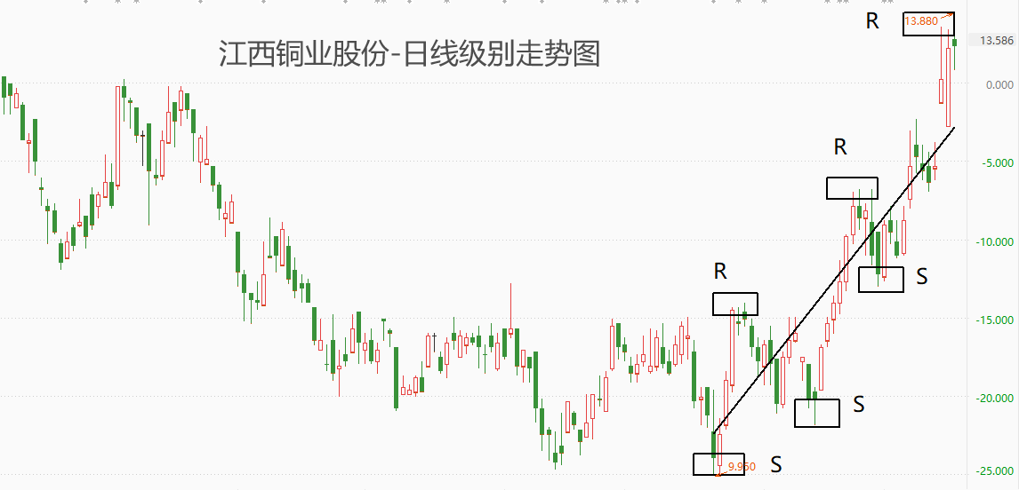 港股市场铜板块有两支上市公司,分别为江西铜业股份和五矿资源,两者的总市值分别为468.2亿港元、272.7亿港元,江西铜业股份的市值更大,更具有行业代表性。江西铜业股份的主营业务是铜、金、银、铅、锌、钨、铼、碲等多品种矿业开发,股价走势与伦敦铜的价格走势共振性极强,可以将江西铜业股份的股价看作是LME铜价格的替代指标。上周四,江西铜业股份大幅跳涨,至今日股价仍处于相对高位。今日最高价达到13.88港元,创出2023年5月12日以来的最高点。由于LME铜价格走高的驱动因素来自于经济面,短期内不会消退,所以LME铜价大概率仍能维持升势。江西铜业的股价与LME铜共振,未来股价将受到显著支撑。