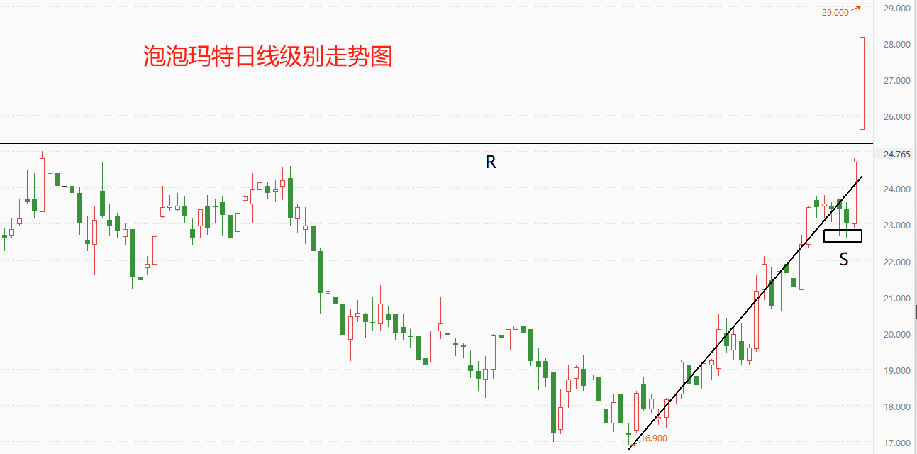 上图为泡泡玛特的日线级别走势图。技术角度看,泡泡玛特股价处于上涨波段,受到亮眼业绩提振后,今日出现长阳线,一举突破R的强阻力位。从回归理论角度看,市价距离黑色回归线的距离较远,一旦后市出现决定性阴K线或者顶分形阻力结构,后市可能展开幅度较大的回落行情。需要提醒的是,恒生指数在今日大幅跳涨,原因是受到了美联储决议的利多影响。如果恒指在后市维持强势状态,泡泡玛特将受到情绪面的提振,短时间内可能不会出现阻力结构。
