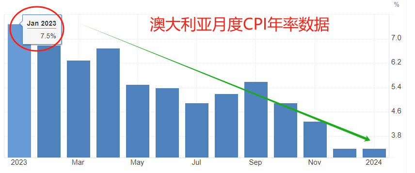 本周三8:30,澳大利亚统计局将公布2月未季调CPI年率,前值为3.4%,预期值3.5%,预期将下降0.1个百分点。澳大利亚有两套衡量通胀率的数据,一套是每个季度发布一次的CPI数据,另一套是每个月都会发布的CPI数据,本周三的数据属于后者。在澳洲联储的会议纪要当中,提及最多的是季度发布的CPI数据,因为它的表现更加稳定。但是,对于研判澳洲联储的利率路径的交易者来说,月度数据更新更加及时,参考价值更大。2023年以来,澳大利亚的月度CPI年率数据处于显著的下降通道当中,从最高点7.5%(2023年1月份)下降至当前的3.4%,平均每月下降0.29个百分点。据此判断,2月份的数据有一定概率超出0.1个百分点的预期降幅。