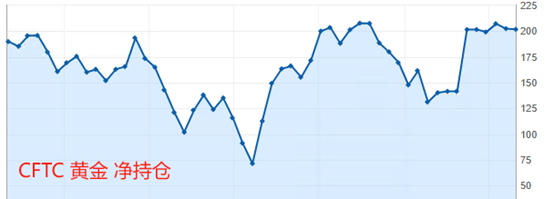 CFTC持仓数据看,截至4月16日,COMEX黄金的净持仓单量为20.19万,相比前值20.24万略有减少。从最近的六期数据看,震荡态势显著,净持仓最大值20.72张,最小值19.93张,差值0.79万张,处于较低水平。净持仓单无法快速提高,可能预示着黄金的多头趋势将出现遇阻回落走势。需要提醒的是,CFTC持仓数据具有一周的滞后性,持仓曲线无法对黄金的短周期走势准确解读。