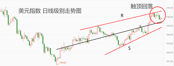 上图为美元指数日线级别走势图。受到降息预期减弱的影响,最近80多根K线走出了一轮流畅的反弹行情。如果今日的GDP数据如CPI和非农就业报告一般表现良好,则降息预期继续减弱,美指可能在图中的中轨位置获得支撑,随后向R上轨处移动。相反,GDP数据表现较差的话,降息预期将增强,美指的短期回落将演变为中期回落,中轨附近无法提供有效的支撑作用,下轨S将有可能成为下一个有效支撑位。