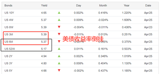 美国债券市场来看,三个月的美债收益率5.39%,高于六个月期的美债收益率5.37%,长短期债券收益率出现倒挂。但是,倒挂的幅度仅为0.02个百分点,少于一次降息的幅度(10基点/0.1个百分点),杂波意味浓,对货币政策的前瞻指引作用较弱。一年期的(52W)国债收益率5.17%,相比六个月期的国债收益率5.37%下降0.2个百分点。两者差距较大,意味着美联储首次降息的时间点极有可能在在6个月后,也就是今年的10月份。如果今日GDP数据的公布值确实如预期一般大降,则国债市场的利率倒挂临界期可能向前移动,6月份首次降息的概率将随之大增。