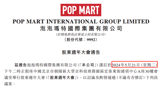 根据4月25日发布的公告,泡泡玛特的股东周年大会将在5月21日(星期二)举办,届时将会对2023年全年的业绩数据进行全面审核和解读,并宣派2023年年度股息。据我们早先发布的财报分析文章:泡泡玛特2023年收益63.01亿元,相比2022年的46.17亿元,猛增36.5%;毛利润38.64亿元,毛利率61.32%,利润空间极其丰厚;基本每股收益0.81元人民币,以当前的市价28港元(1港元对应0.9071人民币)计算,市盈率31.36倍,处于中等水平。核心业绩指标显著提高,2023年业绩超出市场预期并对股价形成显著提振。新一轮股东周年大会将把股票市场的目光重新引导至亮眼年报方面,大会期间股价或出现二次走强。
