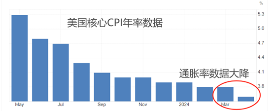 5月15日公布的美国4月核心CPI年率为3.6%,远低于前值3.8%;4月名义CPI年率也从3.5%下降至3.4%。核心CPI与名义CPI纷纷下降,意味着美国的高通胀问题正在持续缓解。按照目前的下降速度测算,年底之前,美国的通胀率有可能会低于2%的调控目标。CPI数据公布后,美元指数单日大跌0.68%,次日便创出月内新低(104.08)。