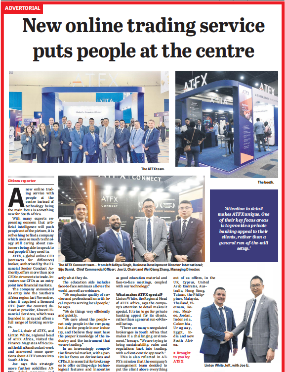 《The Citizen》作为南非发行量较大的报纸之一,一直致力于为读者提供全面、深入的新闻内容。近期对ATFX集团主席Joe Li及非洲区域主管Linton White进行了专访,深入探讨了集团的发展战略、金融科技的前沿应用以及在南非的运营理念。