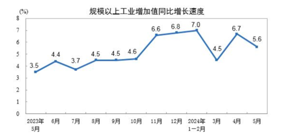 据统计局今日发布的数据,5月份,规模以上工业增加值同比实际增长5.6%,其中采矿业增加值同比增长3.6%,制造业增长6.0%,电力、热力、燃气及水生产和供应业增长4.3%。工业增加值数据是衡量宏观经济周期的权威指标。过去12个月,工业增加值增速处于整体的上升态势:2023年5月份增速为3.5%,今年五月份增速已经达到5.6%,今年一季度甚至冲高至7%。高增长的工业增加值意味着宏观经济正在稳步复苏。海螺水泥属于大基建板块,该板块是典型的周期性行业,行业的景气度与宏观经济周期密切关联。当宏观经济稳步复苏之时,大基金行业的预期前景也会越来越乐观,利多海螺水泥股价。