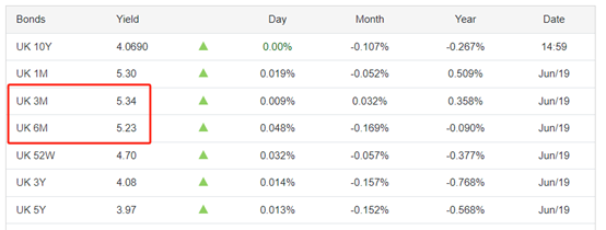 答案是:国债市场还未给出明确的降息信号。英国3个月期国债收益率为5.34%,6个月期国债收益率为5.23%,长期国债收益率低于短期国债收益,出现倒挂现象,倒挂区间为11基点。倒挂现象意味着英央行首次降息的时间点将会在3个月~6个月之间,也就是今年的9月份至12月份。如果6月份的利率决议降息,应当是1个月期和3个月期的国债收益率倒挂才对。事实显然不是如此,所以6月降息的概率不高,市场主流预期认为的“保持基准利率不变”是对的。