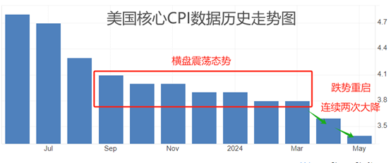 PCE数据月末公布,CPI数据月中公布,后者可以作为前者的前瞻指标。美国5月核心CPI年率为3.4%,低于前值3.6%,降幅0.2个百分点。3月份之前,美国的核心CPI数据一直保持震荡态势,4月份开始重启跌至,5月份数据二次下降,意味着跌势还将延续。从CPI数据看,今晚PCE数据大概率将符合预期,也就是相比前值下降0.2个百分点。