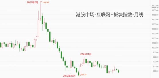 行业角度看,港股市场互联网板块依旧处于显著空头趋势,今年下半年的行情有可能刷新2022年10月形成的最低点。从2021年2月份最高点1987.89算起,截至今日最新市价459.77,互联网行业的平均跌幅达到76.9%。无论多么严重的利空消息,股价跌七成甚至八成都已经兑现了悲观预期,继续下跌有可能出现“股价低于内在价值”的情况。行业性“超跌反弹”机会的出现,有赖于恒生指数企稳回升。5月20日至今,恒生指数累计跌幅超过13%,依然没有筑底迹象。据此判断,互联网+板块“超跌反弹”的时机仍需耐心等待。