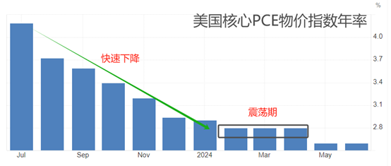 本周五20:30,美国商务部将公布美国7月核心PCE物价指数年率,前值为2.6%,预期值2.7%,预期将增加0.1个百分点。如果预期落实,7月份将是今年以来首次PCE数据升高,但由于升幅较小,所以对9月份美联储降息25基点的预期冲击不大。长周期来看,去年7月份至今年一月份,美国的核心PCE年率数据处于快速下降周期;今年2月份至4月份,PCE数据进入横盘震荡期;5月份大降0.2个百分点之后,6月份持平。如果7月份增速反弹,有可能意味着美国的通胀率已经触底,PCE曲线继续快速下降的可能性降低,利多美元指数。