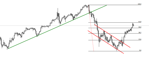USDJPY日线级别行情并没有明确的结构特征。中长期上涨趋势线已经在7月份被有效跌破。一直到9月16日中期空头趋势才有止跌迹象,随后行情便开启剧烈上涨。目前市价已经来到前一轮下跌波段的0.618分位,从黄金分割的角度看,此处有可能导致行情出现回调。另外,考虑到9月中旬至今上涨走势没有出现明显回调,未来可能直接走出V型反转的形态(0.618分位回调不显著的前提下)。