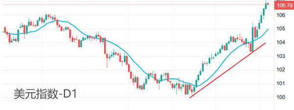 昨日,美元指数上涨0.37%,突破107整数关口,最高触及107.08,收盘时回落至106.87 。最近两年,美元指数的最高点出现在2023年10月3日,最高点107.35,与昨日高点极为接近。如果美元指数强势状态延续,有望创出近两年新高。