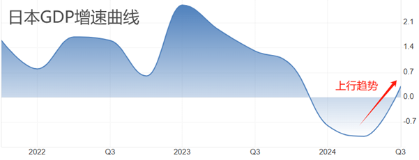 日本央行加息的底气来自于经济数据的强劲。2024年三季度GDP增速年率为0.3%,相比前值-1.1%显著升高,结束了连续两个季度下降的不利局面。2024年10月份的核心CPI年率为2.3%,低于前值2.4%,远低于年内最高点2.8%。虽然数据的趋势看起来不乐观,但绝对值都处于2%的温和通胀标准线上方,货币政策仍有进一步紧缩空间。