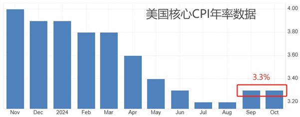 本周三21:30,美国劳工部劳动统计局将公布美国11月CPI相关数据,其中11月未季调核心CPI年率最受关注,前值为3.3%,预期值持平;11月未季调CPI年率前值为2.6%,预期值2.7%,预期增幅较小。从预期值来看,市场人士认为美国在11月份的消费者物价水平变化不大。历史数据看,美国9月和10月的核心CPI年率增速均为3.3%,如果11月份的数据再次保持不变,意味着美国的通胀率已经进入平台期,市场此前所预想的“高通胀迅速卷土重来”的可能性大大降低。