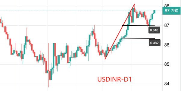 技术角度看,USDINR处于中期上涨趋势之中,走势结构良好,多头延续概率较高。8月5日至20日,行情出现回调,最低点为86.94,处于前一轮上涨走势的0.382分位处,幅度较低。最新的短期上涨波段五连阳,动能较强,既有可能突破中期高点88.11点。