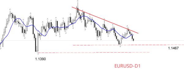 技术角度看,日线级别,EURUSD处于趋势性多转空的过程中,下跌波段受到图中红色下降趋势线的压制。蓝色MA10均线与每一轮涨跌波段交叉,意味着当前的下跌走势不够流畅,反弹波段过多,幅度过大。短期支撑位在1.1467点,中期支撑位在1.1390点,前者是月内低点,后者是半年度低点。美元指数与EURUSD的走势相反,目前处于触底反弹的状态中。因为非农预期的驱动,昨日美元指数大幅上涨,市价已经站上100关口。如果今日非农数据配合,美指多头有望延续。
