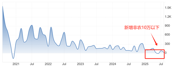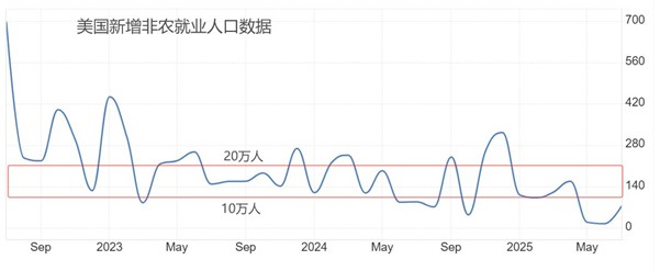 ATFX:非农数据崩塌,美联储9月降息几成定局 ATFX汇评:据美国劳工部数据,美国8月季调后非农就业人口为2.2万人,远低于前值7.9万人,低于预期值7.5万人。美国8月失业率为4.3%,高于前值4.2%。数据发布当日,美元指数从最高98.27跌至最低97.4点。 ▲ATFX图 历史数据看,美国新增非农就业人口数据,在2025年以前,基