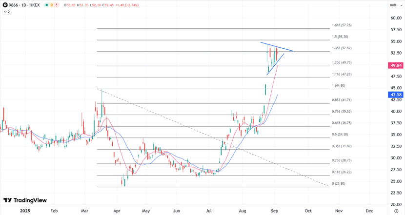 ATFX港股:蔚来汽车业绩喜忧参半,股价反弹缺乏动能 ATFX:今日港股汽车股普遍造好,蔚来汽车(09866)绩后高开3.1%,报52.65元;理想汽车(02015)高开3.1%,报94.55元;比亚迪(01211)以4000万美元入股和谐汽车海外新能源ICAR公司,该股高开1.7%。 蔚来汽车最新业绩显示,二季度财报环比大幅改善,营收190.1亿元,上年同期1