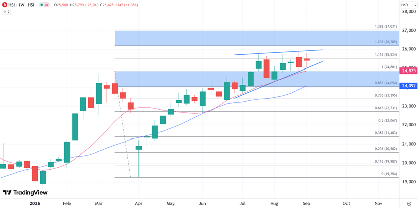 ATFX港股:阿里巴巴强势爆发,带动恒指9月靓丽开门红 ATFX港股:港股在8月最后一个交易日重上两万五关口,全月计累升1.2%,大市在9月首日延续升势,恒指今早高开430点。半日升442点或1.8%,报25,520点;国指升138点或1.5%,报9,085点;恒生科技指数升100点或1.8%,报5,775点,午后大市延续上行。 阿里巴巴(09988)据报已
