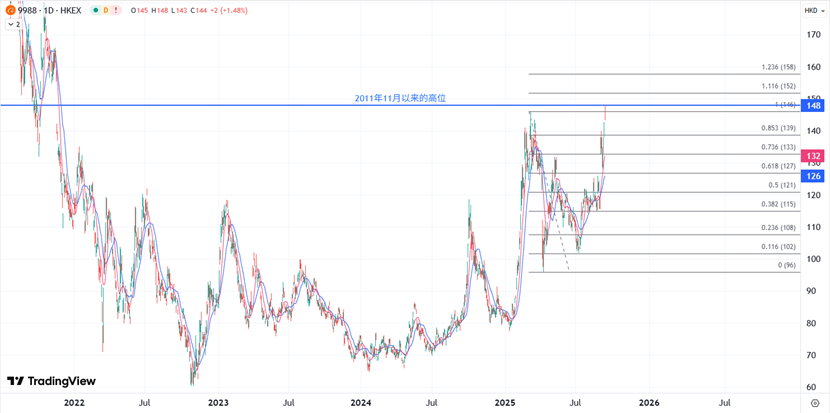 ATFX港股:“重磅业务”高德扫街榜发布,阿里股价继续飙高 ATFX港股:本周阿里巴巴(09988.HK)股价再传利好,早前预告将于26岁生日的今日发布重磅业务。昨日港股股价大涨逾3%后,今日继续跟进,今日早段一度升逾4%。隔夜的阿里巴巴美股也大涨近5%,创2021年11月以来新高。 阿里旗下高德地图宣布推出全球首个基于用户行为