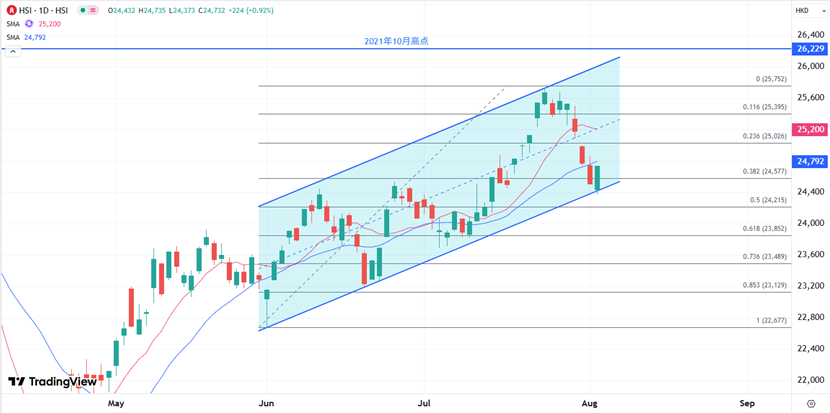 ATFX港股:南下资金叠加技术支撑,恒指暂时止步四连跌 ATFX:港股上周连跌4日后,今早先跌后回稳,中午升119点或0.49%,报24627。国指升44点或0.5%,报8,849点;恒生科技指数升50点或0.9%,报5,447点。A股午后续向好,恒指午后升幅亦扩大,突破早市高位。 科技股普遍低开后反弹,科技指数午后扩大反弹至逾1%,部分得益于