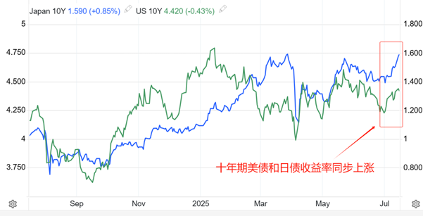 ATFX:日债收益率创2008年以来新高,日元受提振 ATFX汇评:今日盘中,日本十年期国债收益率冲高至1.5973点,创出2008年以来的最高水平。进入7月份以来,日本国债收益率一改连跌颓势,十一个交易日当中,有八个交易日都在上涨,且其中三个交易日的涨幅较大。债市收益率是本币币值的保证。随着十年期日债收益率的升高,日