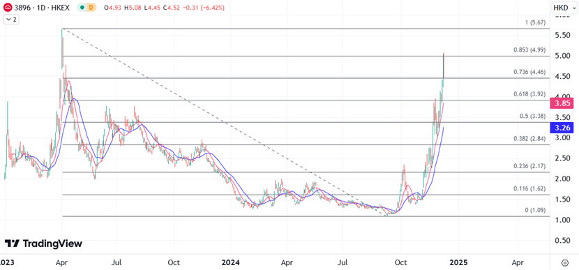 ATFX港股:自9月低点强势暴涨360%,金山云面临关键阻力 ATFX港股:金山云(03896)股价本周以来整体表现强势,在周五自高位回落前,截止周四近一个月股价累计上涨1.9倍,昨日一度大涨超17%,创2023年4月以来新高。而自11月初以来的涨势,得到了业绩的提振外,还有新推产品和拓展计划等利好消息持续跟进。同为金山系的金山