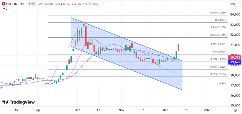 ATFX港股:政治局重新定调货币政策,港股大涨后急速回吐 ATFX港股:中共中央政治局会议研究明年经济工作,提出实施更加积极财政政策及适度宽松货币政策,包括14年来首次转变官方货币政策立场,将实施适度宽松的货币政策,消息刺激反映中概股表现的纳斯特金龙指数收市飙升8.5%。港股两日共飙853点重上两万点大关后,今早
