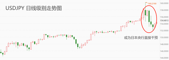 ATFX汇市:日本央行或3万亿干预,日元升值势头显著 ATFX汇市:4月29日,UDJY创出历史新高160.21,随后进入快速回落阶段。五个交易日,最低价触及151.86点,相比最高价暴跌835基点,约5.21%。同期的美元指数跌幅仅为0.96%,两者跌幅严重不匹配,意味着日元的升值走势存在其它力量的干预。 ▲ATFX图 据日本媒体报道,日