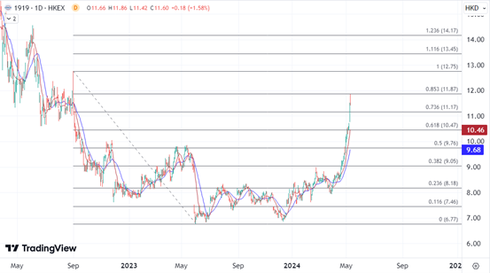 ATFX港股:航运股随货运指数走高,中远海控续创20个月高位 ATFX港股:随着波罗的海干散货运指数连升第六个交易日,再升120点或5.8%,至2,203点,触及3月21日以来的最高位,以及内地集运指数(欧线)主力合约再创新高,最高涨逾6%,周四香港上市航运股造好成为异动板块。 周四盘中,东方海外(00316.HK)升6.37%,创逾八个月