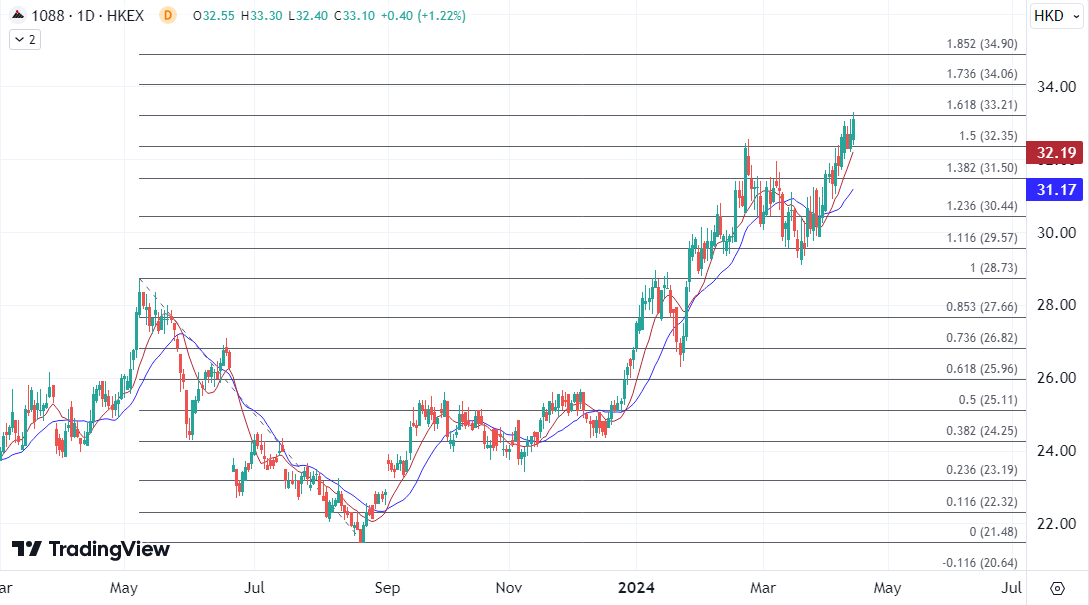 ATFX港股:国九条增高息股配置价值,中国神华连涨两日再创高位 ATFX港股:周一,在“国九条”发布的首个交易日,A股市场迎来大幅反弹,三大指数均收涨逾1%,北向资金大幅流入,全日净买入超80亿元。港股虽然录得三连跌,但中字头股逆市走高,大基建方向领涨。 料首季利润增长逾五成的中国中车(01766)表现最为抢眼,全日