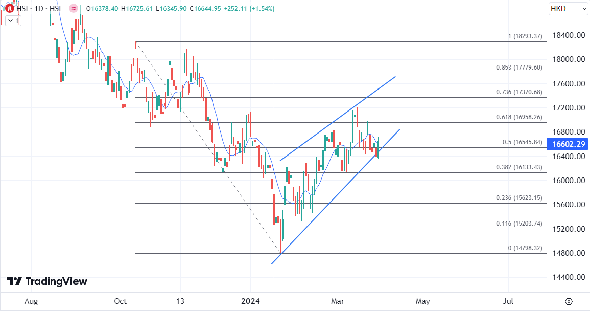ATFX港股:长假前恒指获得科技股提振反弹 ATFX港股:港股今日在长假前今早轻微低开,不过其后跟随A股发力,大市一度倒升近300点。恒指半日升267点或1.63%,报16660点。国指升125点或2.2%,报5853。科指升幅显著,涨129点或3.8%,报3523。中升控股(00881)去年盈利升13%,绩后升9.6%,为表现最佳蓝筹;药明生物(02269)升7.