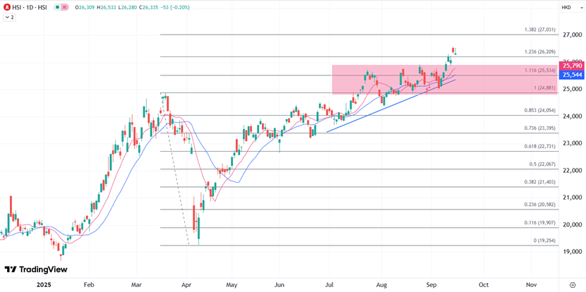 ATFX港股:恒指今年来涨逾三成,本周或进一步冲击27000关口 ATFX港股:投资者观望中美经贸问题会谈最新进展,内地上月「三驾马车」数据均逊预期。港股上周创4年来新高后,今日低开高走,一度回吐最多100点后拗腰倒升,半日涨75点。国指升31点或0.34%,报9396点;科指跑赢,升66点或1.11%,报6055点,大市午后升势略减。