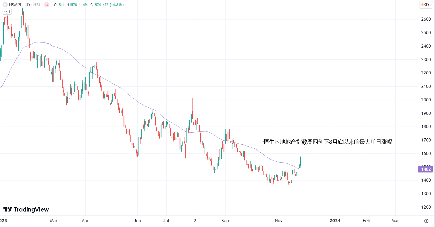 ATFX港股:政策轮番释放利好,内房股本周逆市强势 ATFX港股:本周港股内房股迎来大涨,更多来自政策的宽松和监管支持释放了基本面的利好。市场期待后续各金融机构对房地产业融资的支持力度有望加大,更多金融支持房地产的政策有望落地。 近日,中国人民银行、金融监管总局、中国证监会联合召开金融机构座谈会。会议强调